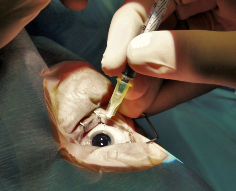 É um dos tratamentos mais comuns e eficazes em Retinologia moderna. Consiste na aplicação de medicamentos (como anti-VEGF ou corticoides) diretamente na cavidade vítrea do olho, garantindo que a concentração terapêutica ideal atinja a retina. Os anti-VEGF, em particular, são usados para neutralizar o Fator de Crescimento Endotelial Vascular que é o responsável pelo vazamento e crescimento de vasos anormais em muitas doenças retinianas.