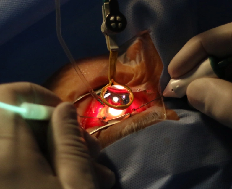 É uma microcirurgia complexa realizada através de incisões mínimas para acessar o interior do olho. O procedimento envolve a remoção cuidadosa do humor vítreo (o gel transparente que preenche a cavidade ocular) e sua substituição por soluções, gases ou óleo de silicone. Esta remoção permite que o Dr. Felipe trate diretamente a superfície e as camadas subjacentes da retina, corrigindo patologias como descolamento de retina e removendo membranas (epirretinianas) ou hemorragias densas.